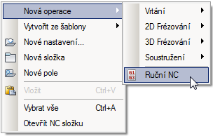 Přístup k možnosti Ruční NC pomocí místní nabídky Nová operace
