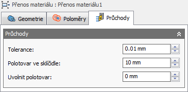 Strategie Přesun polotovaru je určena k automatickému přesunu polotovaru mezi dvěma vřeteny. S touto strategií není asociována žádná dráha nástroje. Požadovaný kód NC vytváří postprocesor.