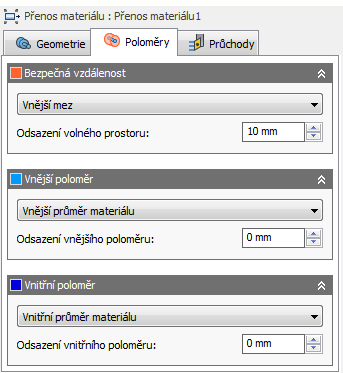 Určuje radiální omezující oblast vymezením vnitřního radiálního rozsahu dráhy nástroje. Lze vybrat následující možnosti: