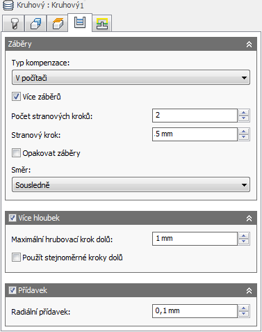 Změnou radiálního přídavku se automaticky nastaví axiální přídavek na stejnou hodnotu, pokud ovšem hodnotu axiálního přídavku nezadáte ručně.