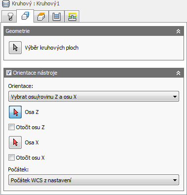 - Počátek WCS z nastavení – k určení počátku nástroje se použije počátek WCS.