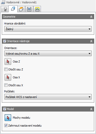 K dispozici je možnost obrábění dolů k vodorovné ploše rozdělená do fází, což znamená, že tato strategie je kombinace strategií hrubování i dokončování.