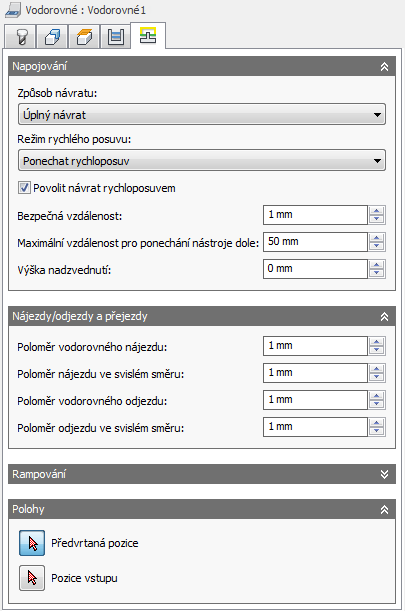 Bezpečná výška je první výškou, do které se nástroj přesune rychloposuvem při přechodu na začátek dráhy nástroje.