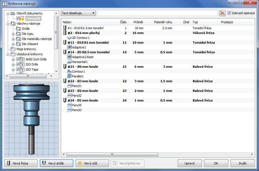 Nástroje budou očíslovány sekvenčně počínaje číslem 1. Zachová se pořadí, které se v danou chvíli používá v Prohlížeči CAM.
