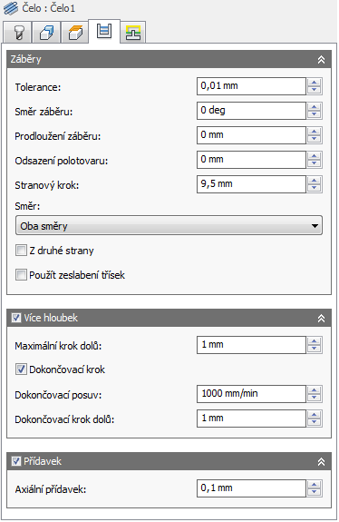 Kladný přídavek – určuje množství materiálu polotovaru zbylého po operaci, který má být odebrán následnými hrubovacími či dokončovacími operacemi. U hrubovacích operací se ve výchozím nastavení ponechá malé množství materiálu.