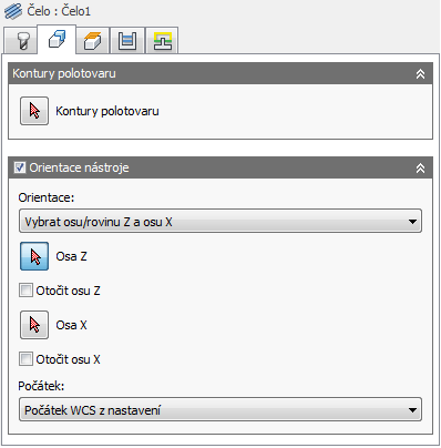 Pomocí kombinace orientace trojice a možností počátku umožňuje určit, jak bude nástroj orientován.