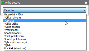 U operací 2D kontura a 2D kapsa lze zakázat možnost Výška posuvu, aby nástroj přešel dolů k nájezdu rychloposuvem. Na kartě Výšky vyberte v rozevíracím seznamu Výška posuvu možnost Zakázáno.