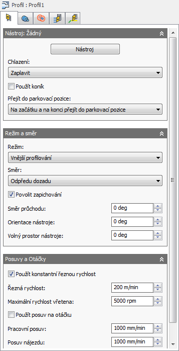 Strategie Profil se používá k hrubování i dokončování součásti pomocí obecných nástrojů k soustružení.