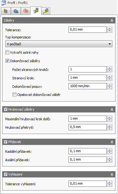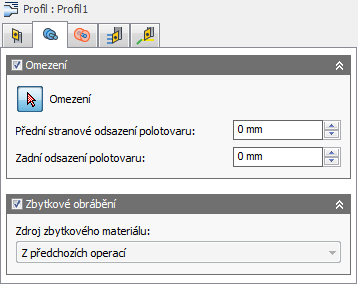 U dokončovacích operací je výchozí hodnota 0 mm/0", tj. nebude ponechán žádný materiál.