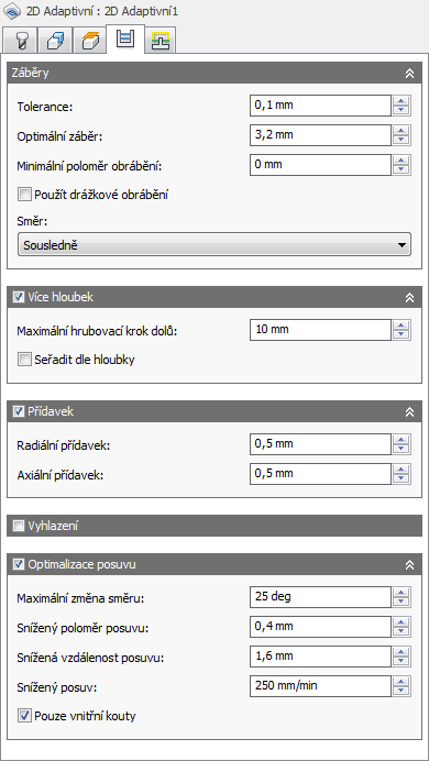 U dokončovacích operací je výchozí hodnota 0 mm/0", tj. nebude ponechán žádný materiál.