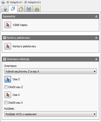Strategie Adaptivní obrábění vytvoří trajektorii nástroje ze zřetězených kontur, nikoliv z povrchů nebo těles. U stěn lze definovat úhel zúžení.