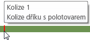Pokud dojde ke kolizi dříku nebo úchytu s polotovarem, zobrazí se na časové ose červená značka s popisem kolize v bublinkové nápovědě.