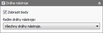 Skupina Trajektorie nástroje poskytuje různé možnosti ovládání vizualizace trajektorie nástroje. Dostupná nastavení umožňují zobrazit během animace úplnou trajektorii nástroje, celou trajektorii nástroje před aktuální pozicí nástroje nebo po ní, trajektorii nástroje operace nebo koncovou část trajektorie nástroje před aktuální pozicí nástroje.