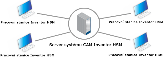Distribuovaný systém CAM umožňuje efektivněji využívat vaše pracovní stanice. Distribuovaný systém CAM lze používat v různých konfiguracích, jak je znázorněno níže.