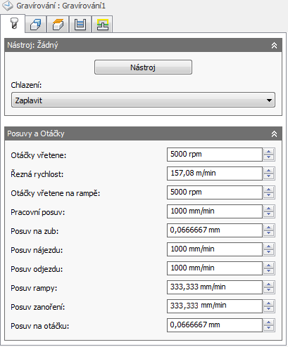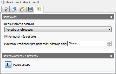 Zakázáno: Zákaz možnosti Výška posuvu způsobí rychloposuv nástroje dolů k nájezdu.