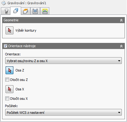 Orientace WCS z nastavení – k určení orientace nástroje se použije souřadnicový systém obrobku z aktuálního nastavení.