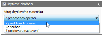 - Zapněte možnost Zbytkové obrábění a nastavte parametr Zdroj zbytkového materiálu na možnost Z polotovaru nastavení.