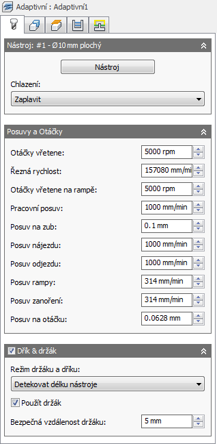 Při používání nástroje s držákem je možné vybrat si v závislosti na strategii obrábění jeden z pěti různých režimů dříku a držáku. U dříku i držáku nástroje lze řešit kolize a lze jim přiřadit vlastní bezpečné vzdálenosti.