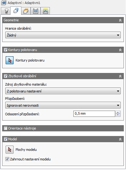 Žádný přídavek – odstraní veškerý přebytečný materiál až k vybrané geometrii.