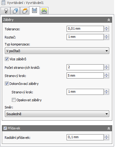 Změnou radiálního přídavku se automaticky nastaví axiální přídavek na stejnou hodnotu, pokud ovšem hodnotu axiálního přídavku nezadáte ručně.