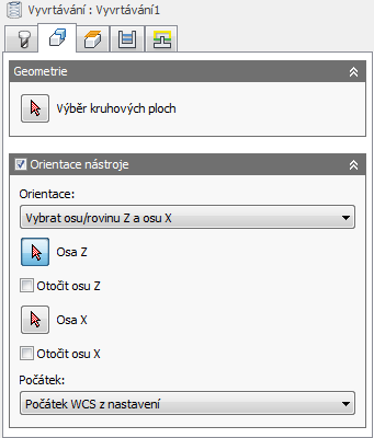 Pomocí kombinace orientace trojice a možností počátku umožňuje určit, jak bude nástroj orientován.