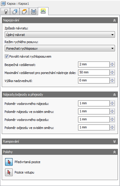 Určuje způsob, jakým se řezací nástroj posune dolů do jednotlivých hloubek řezání.