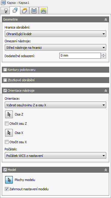 Ve výchozím nastavení je tato možnost povolena. Kromě povrchů modelu vybraných v rámci operace je zahrnut model vybraný v nastavení. Pokud tuto možnost zakážete, bude se dráha nástroje generovat pouze na površích vybraných v operaci.