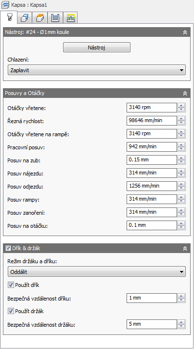 Při používání nástroje s držákem je možné vybrat si v závislosti na strategii obrábění jeden z pěti různých režimů dříku a držáku. U dříku i držáku nástroje lze řešit kolize a lze jim přiřadit vlastní bezpečné vzdálenosti.