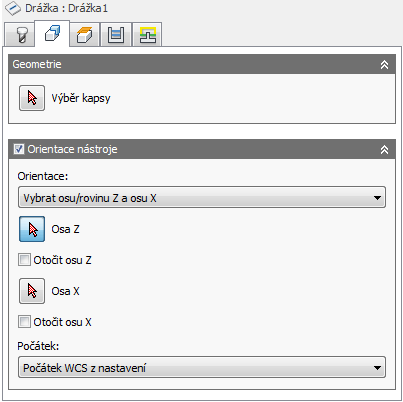 Pomocí kombinace orientace trojice a možností počátku umožňuje určit, jak bude nástroj orientován.
