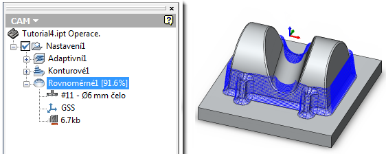 Náhled částečně vytvořené rovnoměrné trajektorie nástroje