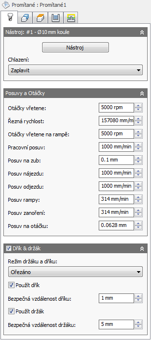 Změnou radiálního přídavku se automaticky nastaví axiální přídavek na stejnou hodnotu, pokud ovšem hodnotu axiálního přídavku nezadáte ručně.
