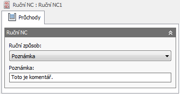 - Poznámka – Umožňuje napsat poznámku v programu NC.