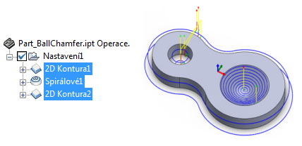 V následující součásti se pomocí frézy s kulovým koncem vytváří sférické odsazení. Poté jsou pomocí stejného nástroje zkoseny 90stupňové hrany.