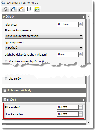 Chcete-li vytvořit zkosení, jednoduše vytvořte operaci 2D kontura a ujistěte se, že je vybrán nástroj frézy s kulovým nebo torickým zakončením.