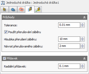 Změnou radiálního přídavku se automaticky nastaví axiální přídavek na stejnou hodnotu, pokud ovšem hodnotu axiálního přídavku nezadáte ručně.