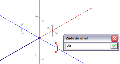 Zastavte kurzor nad šipkami otáčení nebo nad směrovými osami 3D ortogonální trasy a zadejte hodnotu pro přesné vzdálenosti.
