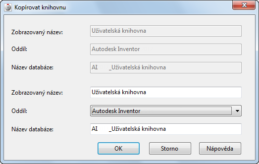 Místní obsah aplikace Inventor je ve výchozím nastavení umístěn ve složce C:\ProgramData\Autodesk\Inventor <verze>\Content Center\Libraries nebo C:\Documents and Settings\All Users\Application Data\Autodesk\Inventor <verze>\Content Center\Libraries. Toto výchozí umístění lze změnit na kartě Obsahové centrum v možnostech aplikace. Viz předchozí obrázek.