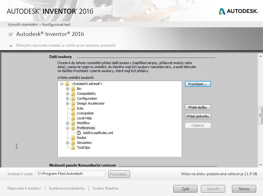 Jako správce můžete spravovat načítané doplňky pomocí úprav a rozmístění souboru AddInLoadRules.xml. Ve výchozím nastavení se soubor nainstaluje do umístění: %appdata%\Autodesk\Inventor 2016\Addins\AddInLoadRules.xml .