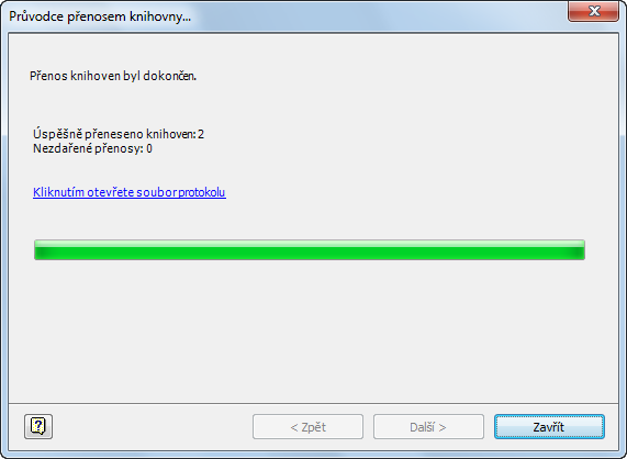 5. Chcete-li převést knihovny, klikněte na tlačítko [Další]. Viz obrázek 5. Proces ukončíte kliknutím na tlačítko Zavřít.