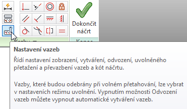 Všechna nastavení týkající se vazeb 2D náčrtu jsou znovu uspořádána do jednoho nového příkazu s názvem Nastavení vazeb.