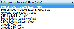 V rozevíracím seznamu je nyní k dispozici nový seznam přijatelných formátů k exportu globální rozpisky, kusovníků a tabulek revizí.