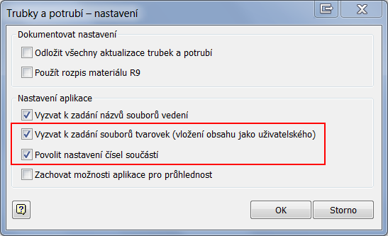 Aktualizace možností dialogů v prostředí trubek a potrubí: