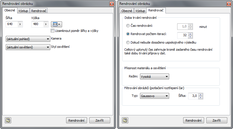 Nastavení rendrování ilustrace aplikace Studio byla přesunuta na kartu Pohled
