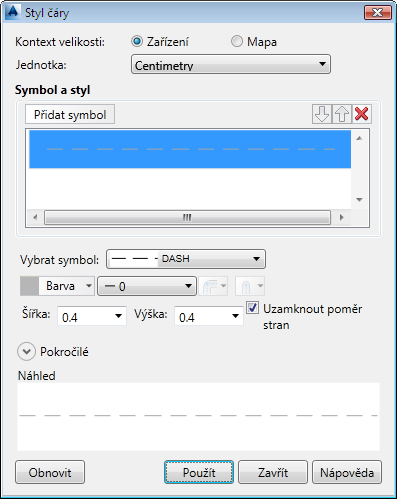 - V poli Vybrat symbol vyberte čárkovaný vzor pro čáry.
