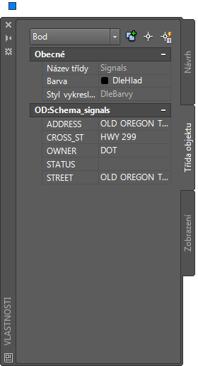 Při dotazování na objekty ze souboru DWG do mapy se ztratí všechny informace o stylech. Body nemají nastaveny styly, proto je v mapě nelze zobrazit. Chcete-li zobrazit body signálu, přiřaďte mapě styl bodu.