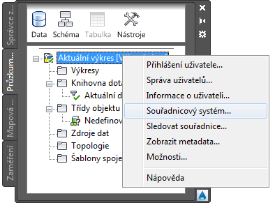 Nastavte souřadnicový systém pro novou mapu pomocí Průzkumníku mapy.