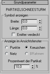 Die Emitterparameter werden im Bereich "Symbol anzeigen" im Rollout "Grundparameter" des Partikelsystems festgelegt.