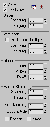 - Wenn diese Option aktiviert ist, wird die Verdrehung sowohl auf steife als auch auf verformbare Hüllen angewendet. Vorgabe = Deaktiviert.