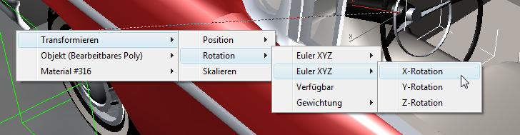 - Klicken Sie auf die Karosserie (Chassis), und wählen Sie Transformieren
