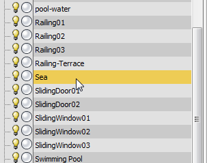 - Klicken Sie im Szenen-Explorer-Bereich auf das Objekt Meer, um es zu markieren.